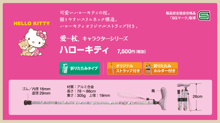 楽しいキャラクターのストラップ付スリムネックステッキです。