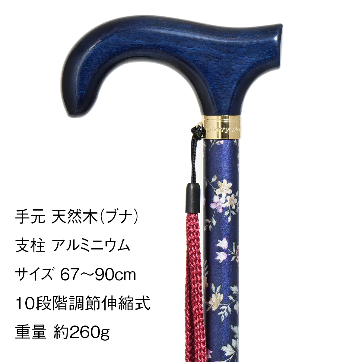 ※このステッキは艶消花柄伸縮式アルミステッキの「ネイビー」です。