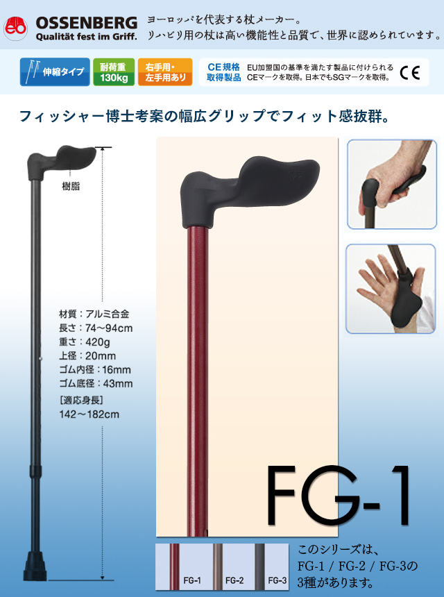 オーストリアの医師・フィッシャー博士が考案した幅広グリップの伸縮式アルミステッキです。