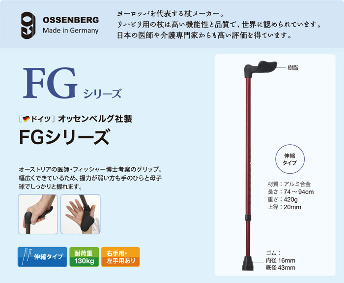 オーストリアの医師・フィッシャー博士が考案した幅広グリップの伸縮式アルミステッキです。