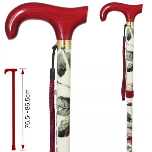 大輪の花を描いたデザインが魅力のダービー型ハンドル四つ折りアルミステッキ。