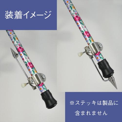 ステッキの先に固定できる冬季期間の滑り止めとしてお使いいただけます。