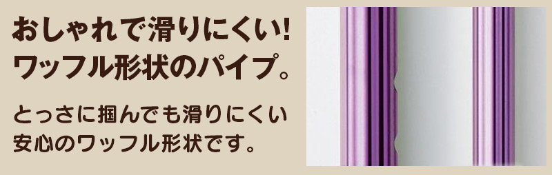 ●アルミ支柱はおしゃれなワッフル形状。とっさに支柱を掴んでも滑りにくいので安心です。