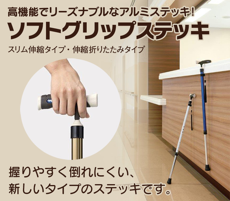 使いやすく、軽くて丈夫、そしてリーズナブル。ステッキを使う人の目線に立って開発された、便利な機能満載のアルミステッキです。