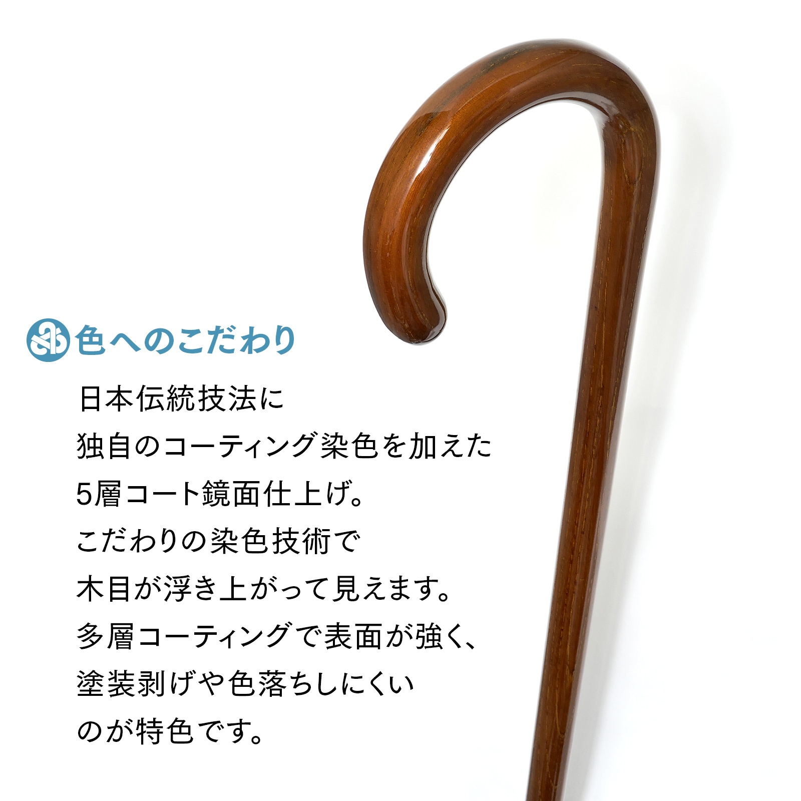 ファッションステッキとしても重宝されていた「大曲」スタイルのステッキに現代の技術を加え、色・木目を綺麗に表現しました。