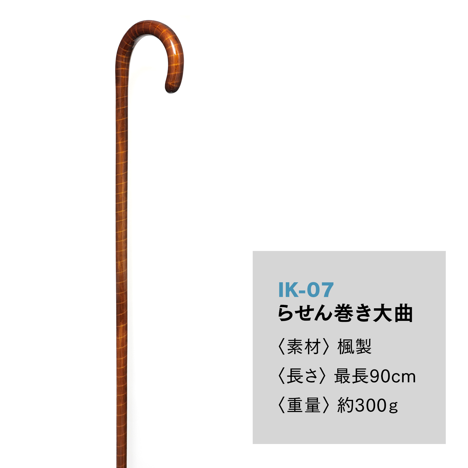 楓をつかった大曲に職人がらせん状の模様を施した、クラシカルで新しいスタイルのステッキです。