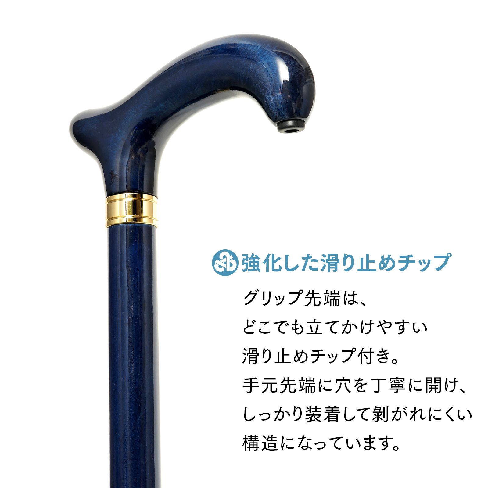 傷に強く美しい、5層コート鏡面仕上げの波型手元ステッキ。