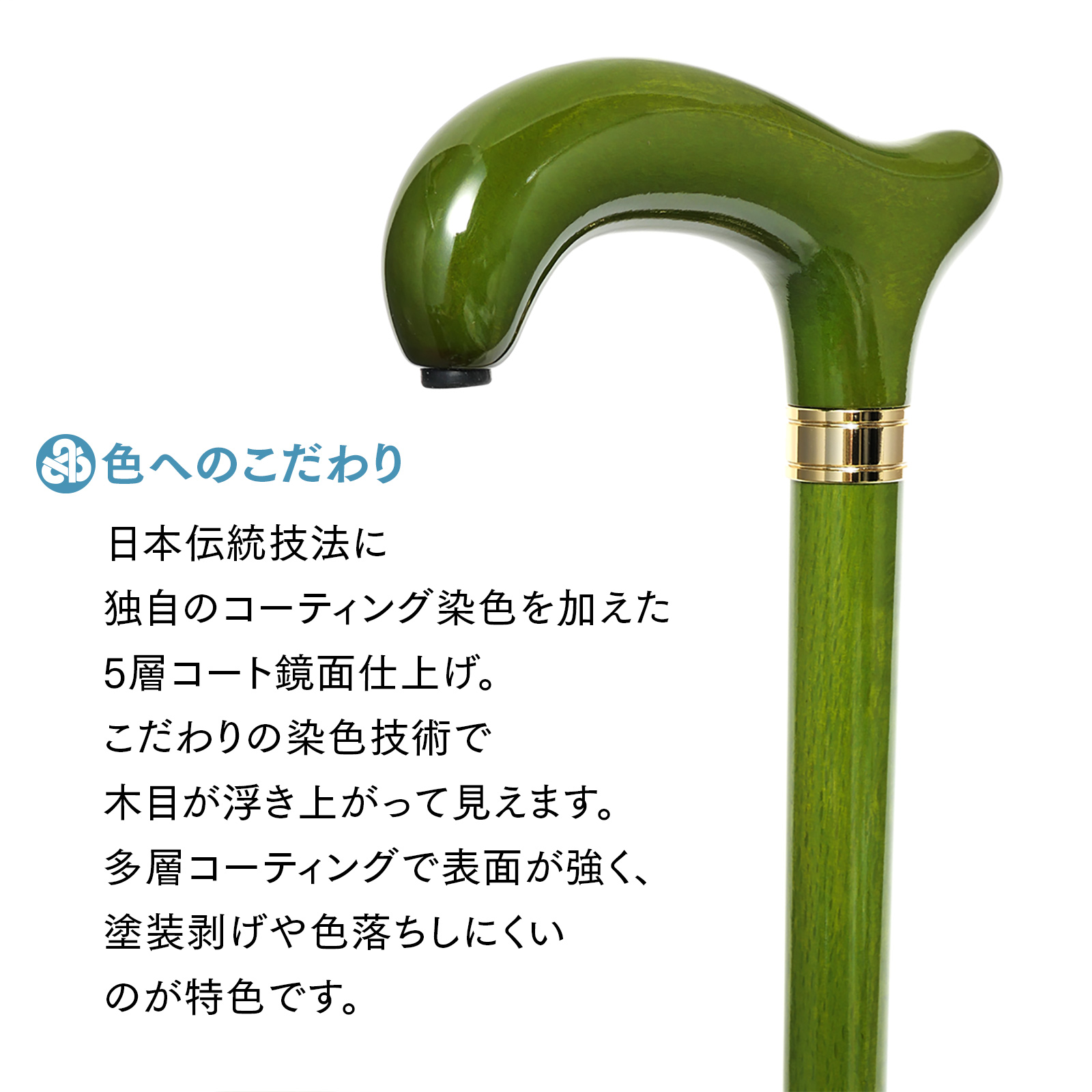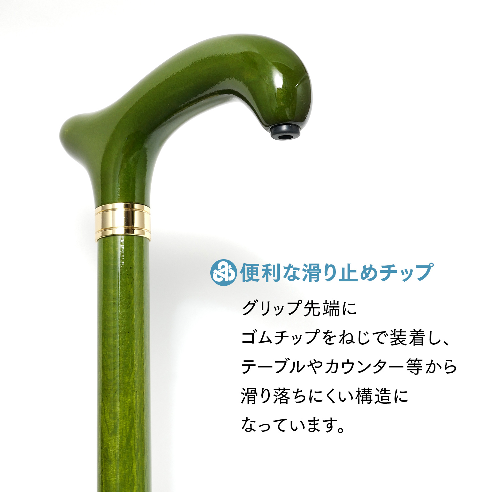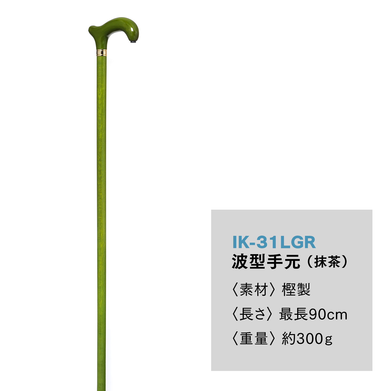 【国産木製ステッキ IIDA STICKS】 波型手元〈若草〉(IK-31LGR)