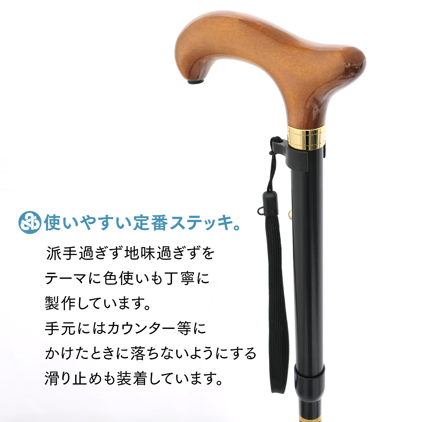 日本製・売れ筋定番。使いやすさで選ばれる、定番タイプの無地折りたたみステッキ。