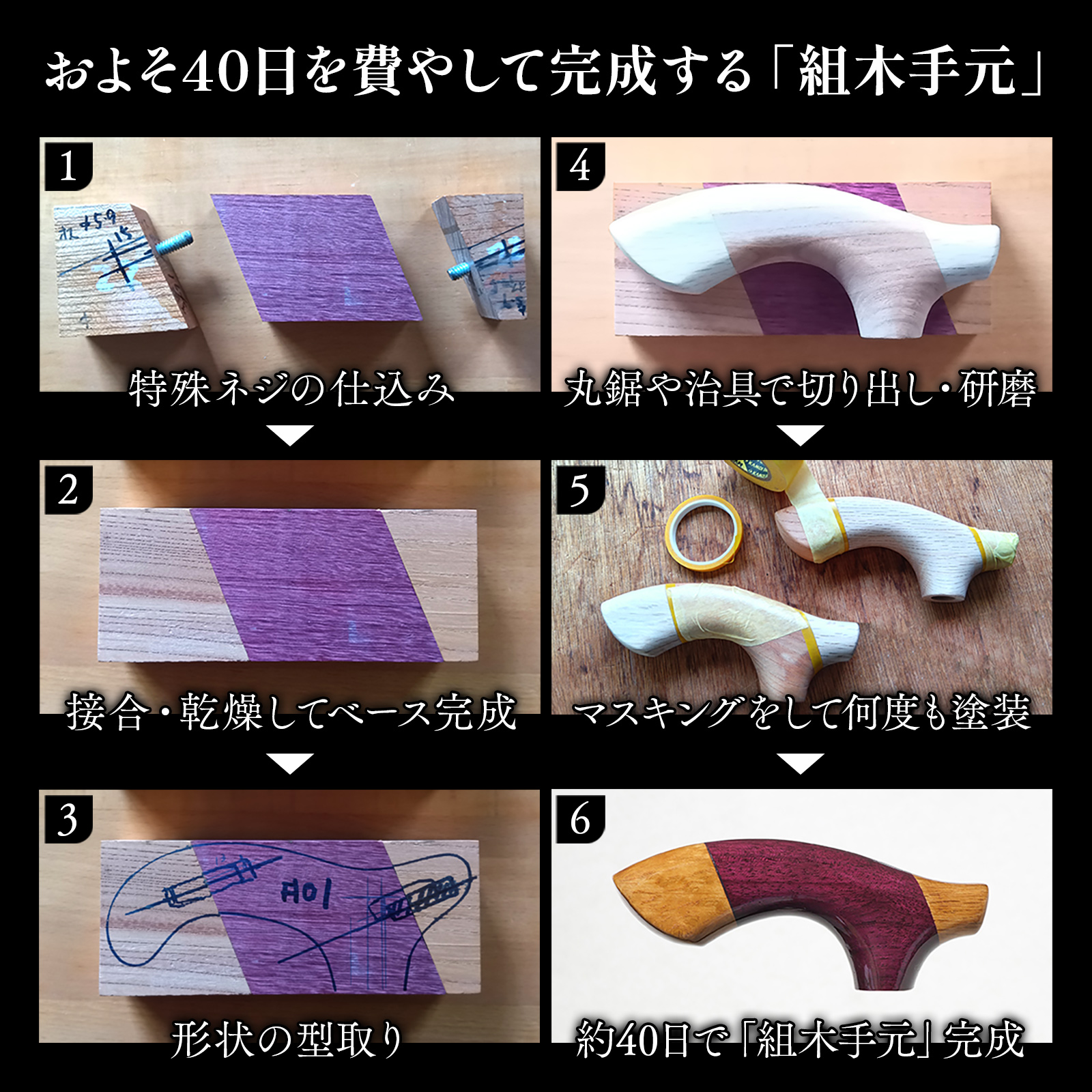 その美しい見た目と艶やかで継ぎ目を感じさせない組木手元の仕上がりは、まさに芸術品と呼ぶにふさわしい逸品です。
